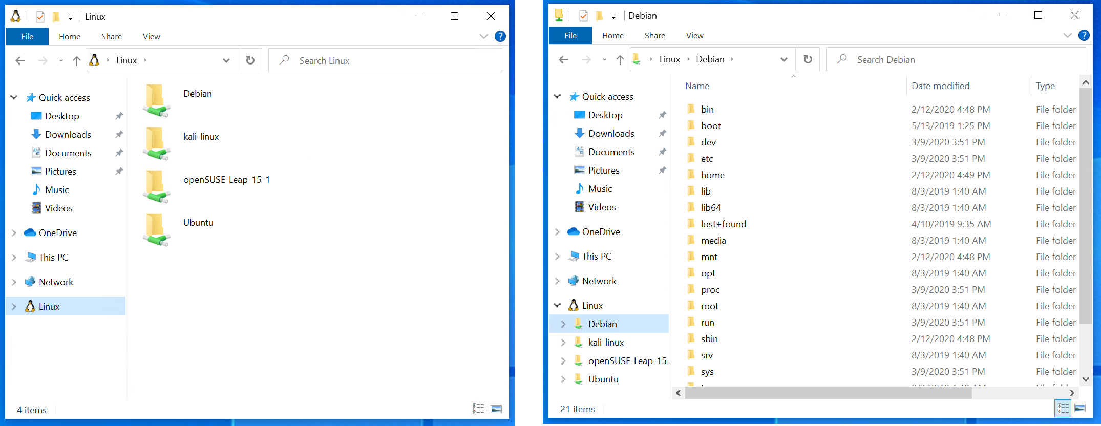 Abbiamo già parlato a più riprese del WSL, il Windows Subsystem for Linux integrato in Windows 10, qui su LFFL. A breve arriverà la versione 2 del WSL che sarà aggiornabile tramite Windows Update a riprova dell’avvicinamento di Microsoft al mondo GNU/Linux. Avvicinamento dimostrato anche con il porting di Powershell 7.0 e Windows Defender oltre a Microsoft Teams, oggi molto usato dagli studenti a causa del coronavirus. La notizia di oggi vede un ulteriore apertura di Microsoft verso il pinguino con l’integrazione dell’icona TUX in esplora risorse e l’accesso alle cartelle Linux dal file manager di Windows.