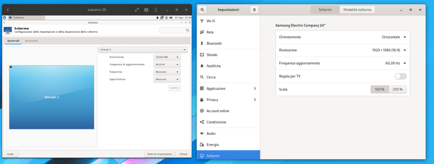 Un confronto tra le impostazioni di XFCE, a sinistra, e GNOME, a destra