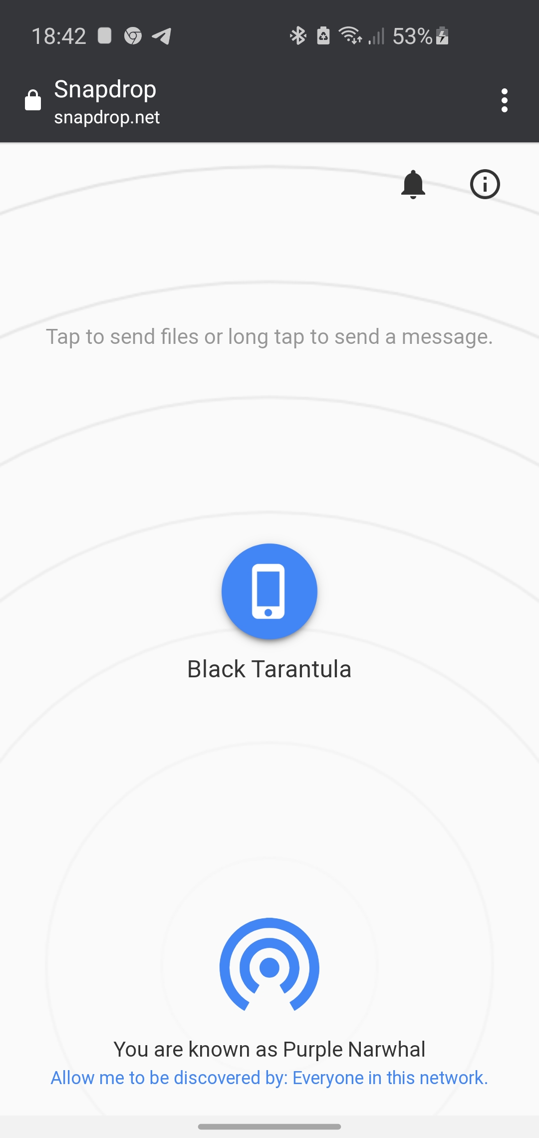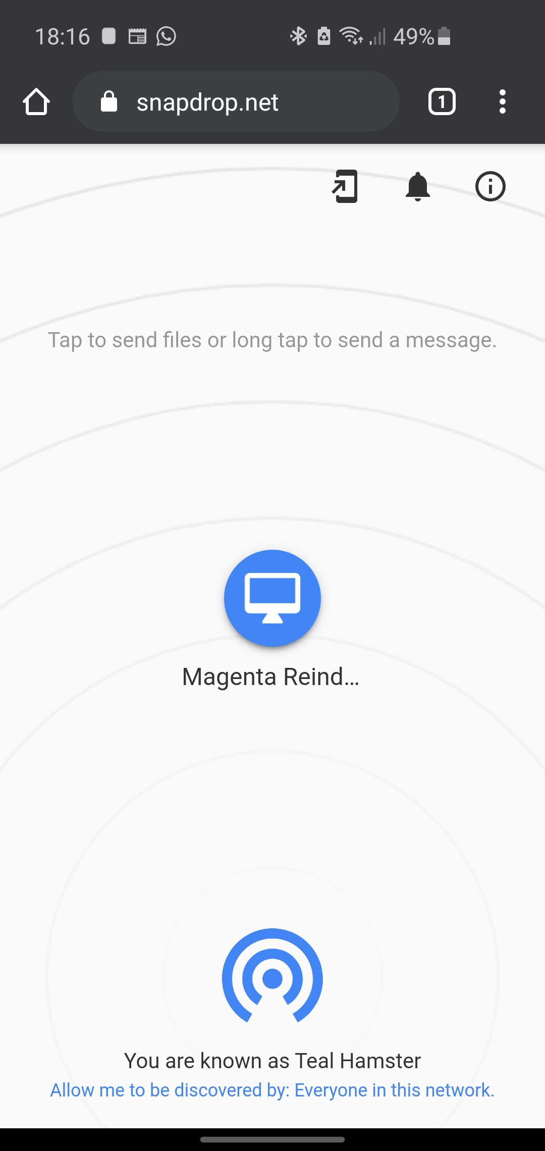 Aperto il sito potete avviare lo scambio dei file con un tap sul device di destinazione: