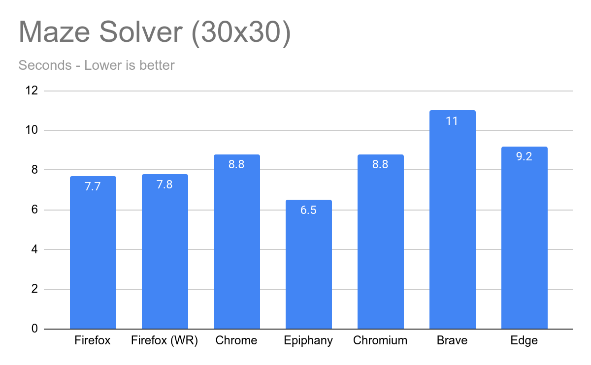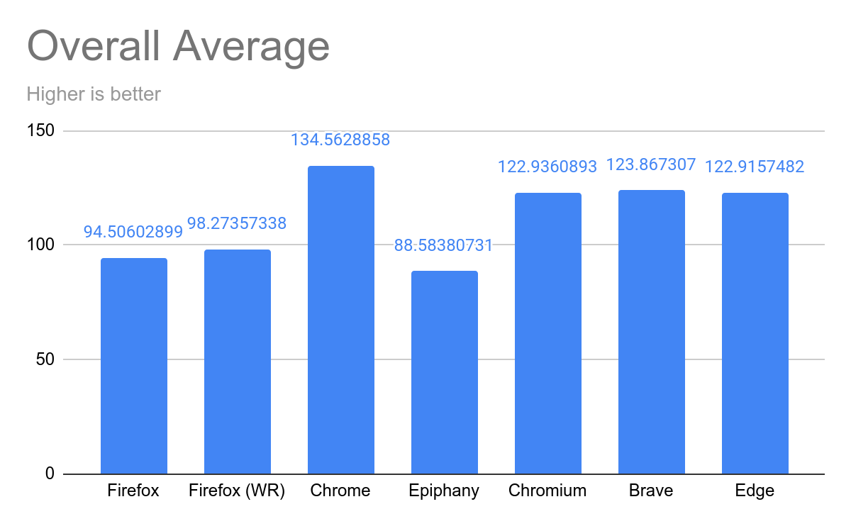 In questo articolo, confronterò vari browser Web popolari. Quattro dei quali utilizzano Blink/V8 come motore mentre Firefox e GNOME Web (Epiphany) utilizzano rispettivamente Gecko e WebKitGTK.
