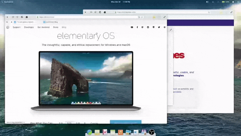 Lo switch tra le finestre in eOS 6 è cambiato. Un recente aggiornamento ha sostituito l’invadente alt + tab della distro, lo vedete nella GIF qui sopra, con una versione più semplice (sotto). Il nuovo approccio è più simile al tipo di switcher che si trova in altri ambienti desktop Linux o su Windows.