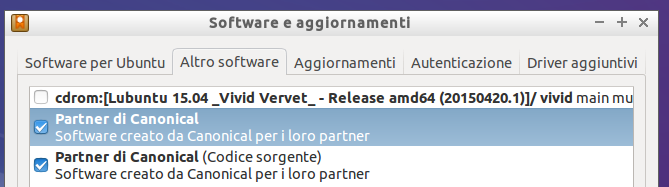 Andiamo ad Altro Software e spuntiamo le voci relative ai repository Partner di Canonical.