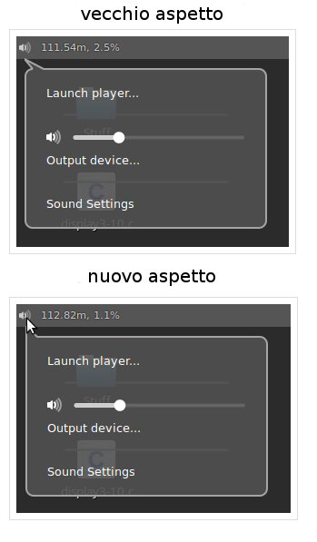 La prima riguarda i box che si aprono quando andiamo a cliccare su qualcosa tipo il controller dell’audio che ora hanno una grafica più moderna. Ecco un esempio: