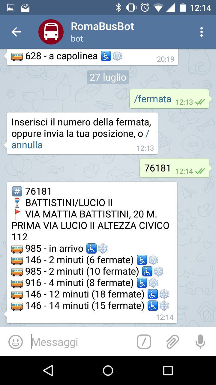 RomaBusBot: il bot per Telegram che ti avvisa sui tempi di attesa dei bus a Roma