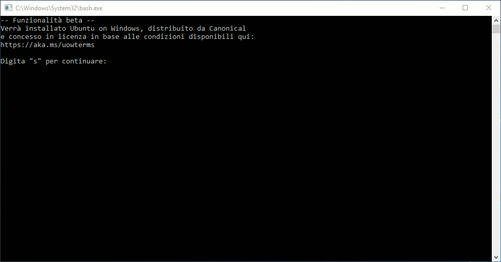 Completiamo l’installazione vera e propria della Bash di Ubuntu