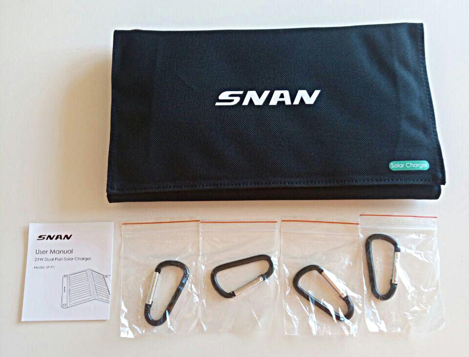 Il prodotto testato e consigliato è un caricatore a energia solare pieghevole con 21W di targa di picco dei pannelli solari fotovoltaici con 2 porte USB per caricare smartphone e tablet o un qualsiasi dispositivo che si possa ricaricare o alimentare tramite una porta USB e non assorba una potenza superiore a quella dichiarata di uscita ovvero 10W.