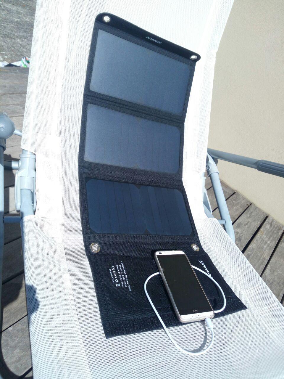 Il funzionamento del dispositivo è semplicissimo, una volta aperto completamente ( come un libro ) basterà uscire di casa per iniziare a ricaricare i nostri dispositivi senza aver bisogno di una presa di corrente, anche se il cielo è nuvoloso, riuscirà ad erogare energia a sufficienza per sostenere la ricarica ovviamente meno luce c’è e più tempo occorrerà. Da considerare che in presenza del sole la ricarica ottimale si ha stendendolo orientato al sole il quale però non sta fermo nel cielo e quindi ogni tanto occorrerà orientare il dispositivo per ottenere la ricarica nel più breve tempo possibile. Ad esempio per ricaricare lo smartphone in foto in una giornata di sole pieno di fine Agosto dal 15% di carica residua ha impiegato circa 2 ore e mezza senza muovere nulla.