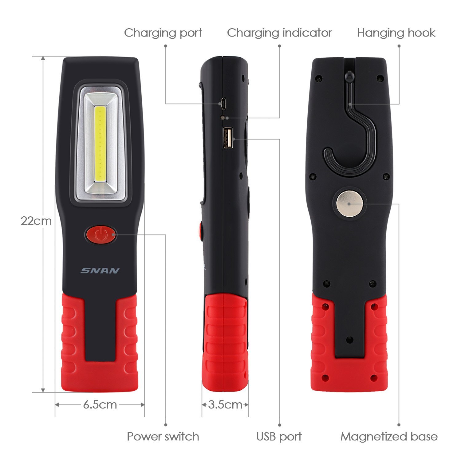 Questa torcia a LED è davvero di ottima qualità, ottimi materiali e resistente ad urti tanto da consigliarvela come acquisto o da regalare. Qui il link del prodotto in vendita su AMAZON: SNAN COB LED Luci di Lavoro per auto/Luce di campeggio con Hanging Hook e Magnet Base ,una porta di ricarica e una porta USB(5V/0.7A)