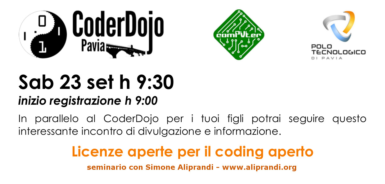 Licenze aperte per il coding aperto: mio seminario a CoderDojo Pavia