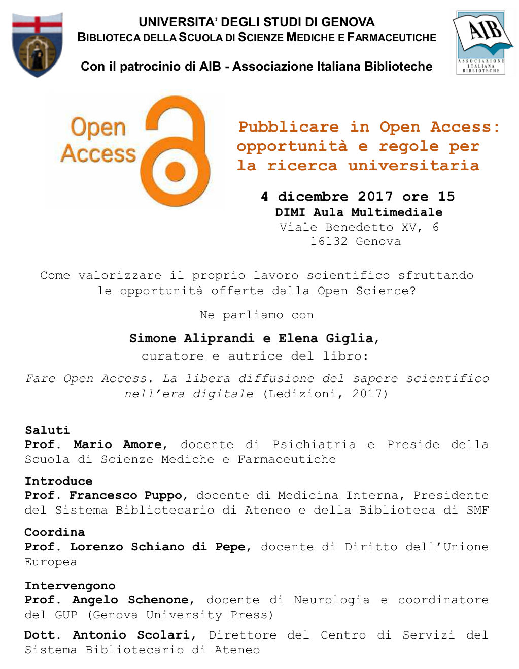 Pubblicare in Open Access: opportunità e regole per la ricerca universitaria. Tavola rotonda a UniGE