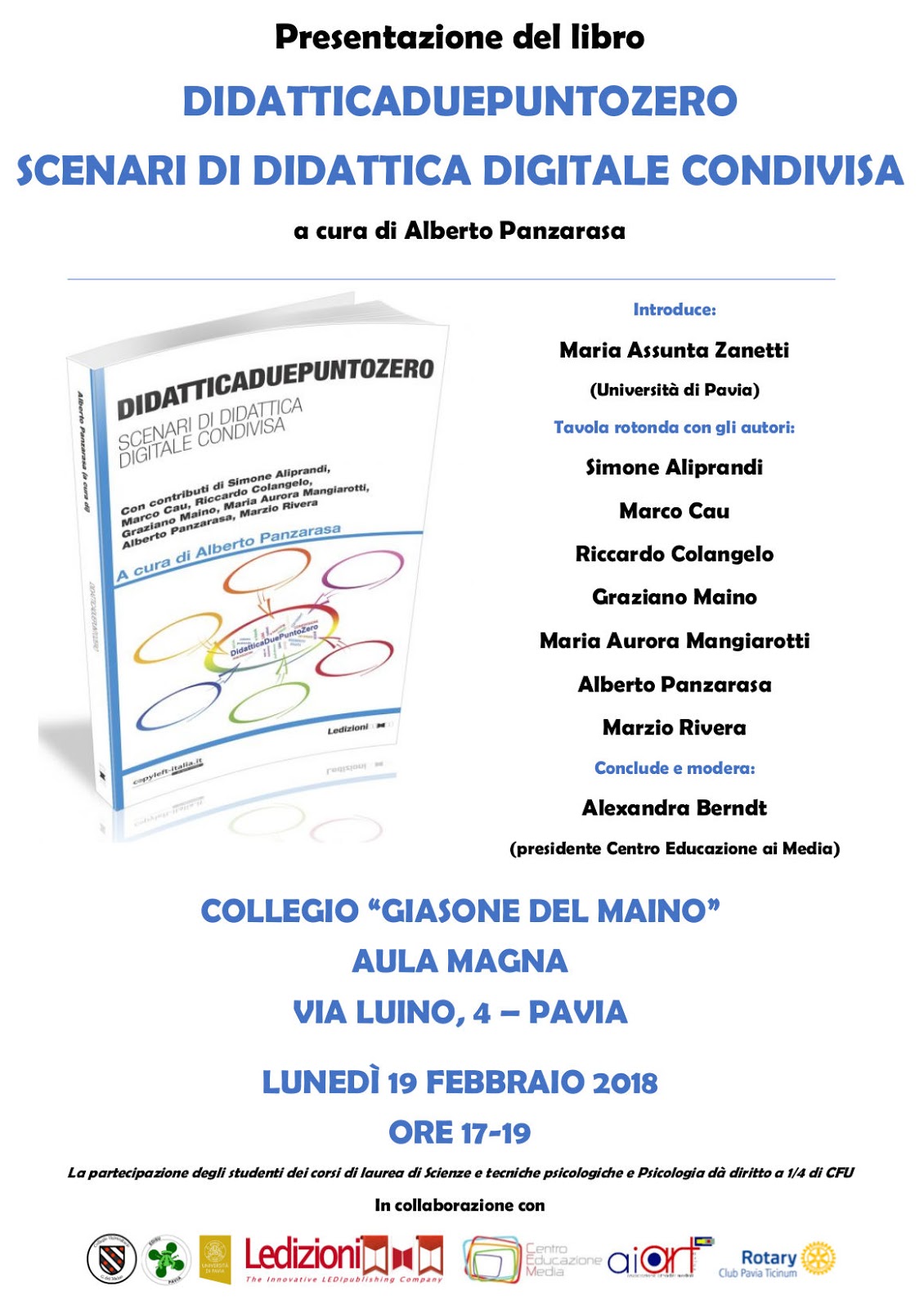 Lunedì 19 febbraio alle ore 17 vi aspettiamo al Collegio Giasone Del Maino di Pavia per presentare il libro DidatticaDuePuntoZero (scarica il libro).
