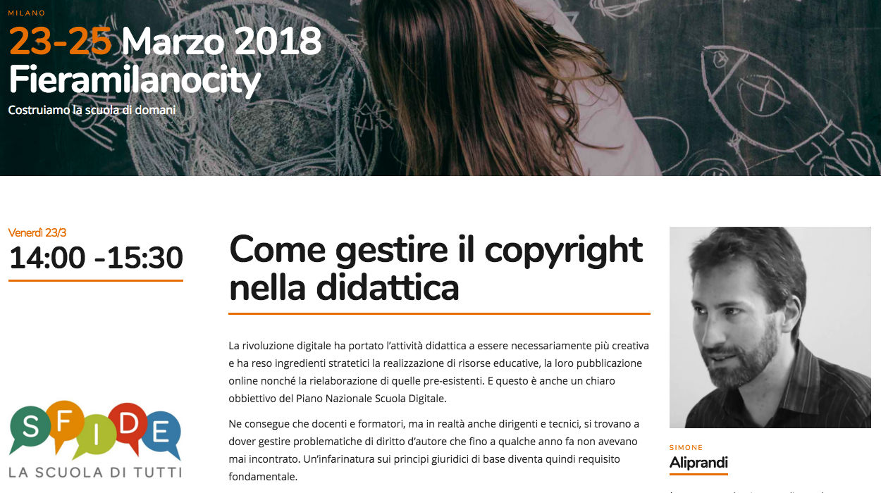 A Milano l’evento “SFIDE La scuola di tutti”. Ci sarà anche un mio seminario sul copyright nella didattica
