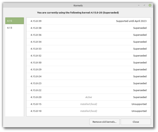 L’update manager introduce un nuovo bottone che facilita la rimozione dei kernel presenti nel sistema ma inutilizzati.