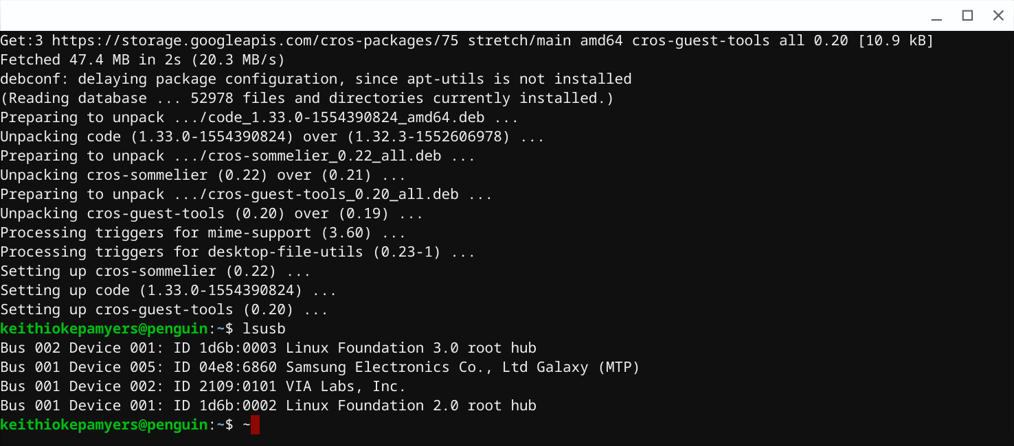 Dopodichè è necessario riavviare il Chromebook e lanciare un terminale Linux dando i seguenti comandi: