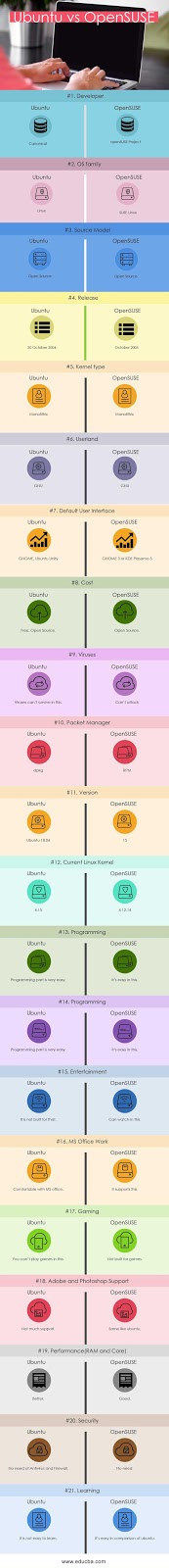 - Ubuntu appartiene alla famiglia Linux mentre OpenSUSE appartiene a SUSE-Linux