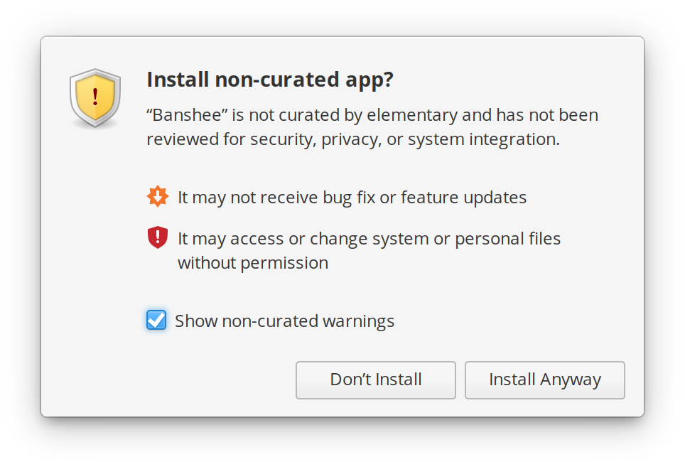 Un warning compare quando si cerca di installare un’app al di fuori di quelle ritenute trusted.