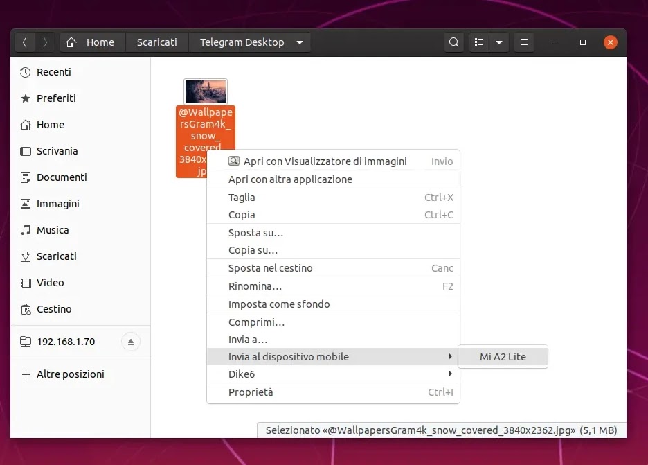 oppure inviare un file da Ubuntu al nostro smartphone