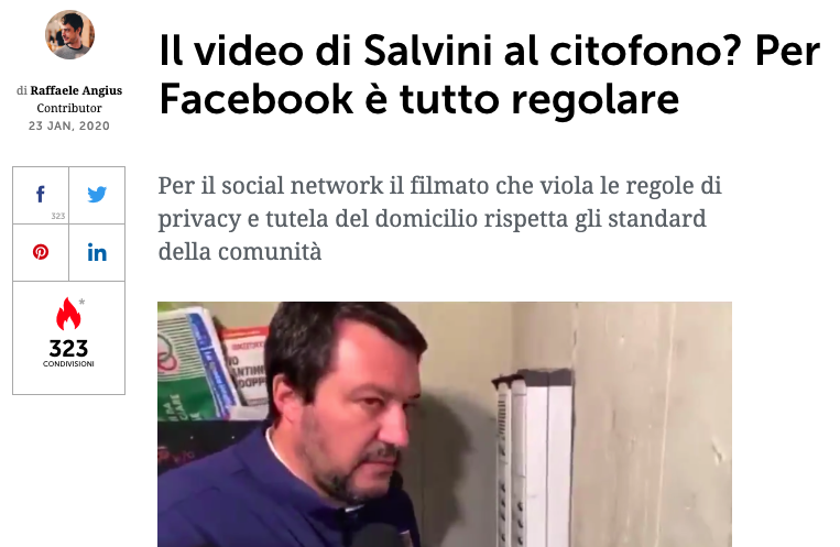 Condivido e invito a leggere l’articolo Raffaele Angius per Wired con prezioso contributo dell’amico Giovanni Battista Gallus: https://www.wired.it/internet/regole/2020/01/23/salvini-citofono-facebook/.