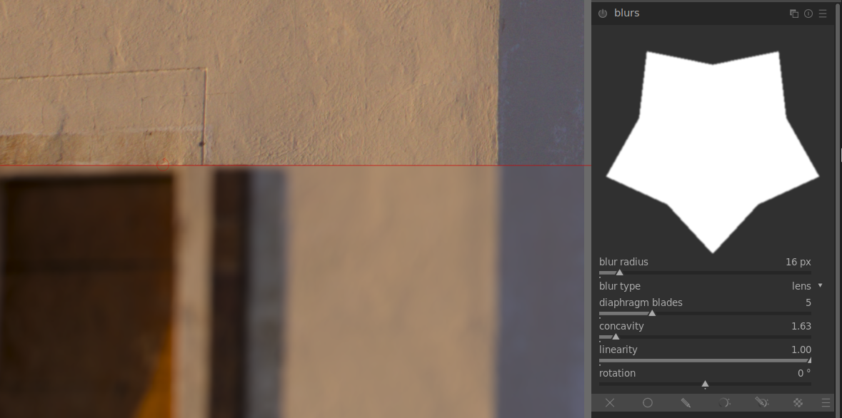- sfocatura gaussiana (gaussian blur): non è proprio una sfocatura ottica, ma può essere utilizzata per ridurre il rumore